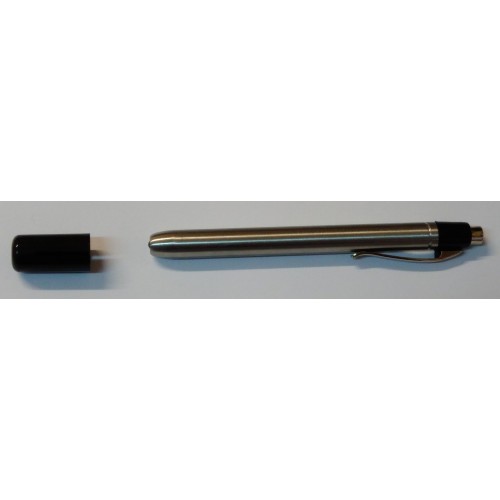 | Características | Cuerpo fabricado en acero inoxidable. Incorpora clip para colgar de la solapa o bolsillo. Se acciona mediante un pulsador de encendido o apagado, para mayor comodidad. Filtro azul desmontable. Presentación en envase individual. |