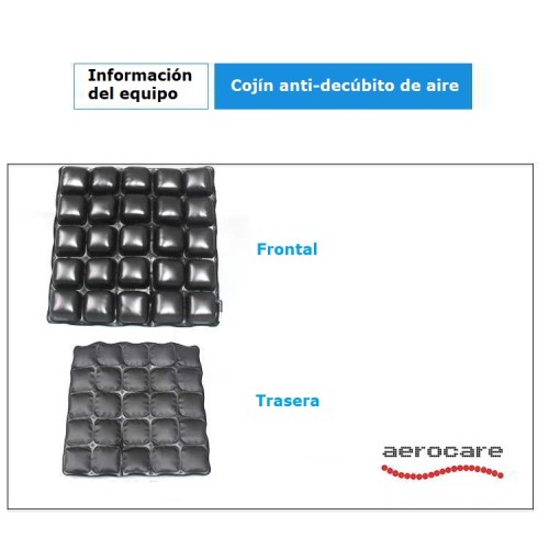 El cojín es un dispositivo médico anti-decúbito para personas con discapacidad, mayores, trabajadores sedentarios, conductores, pacientes obligados en una posición sentada durante mucho tiempo, etc. Especialmente diseñado para todos los pacientes con un riesgo alto de úlceras de decúbito.