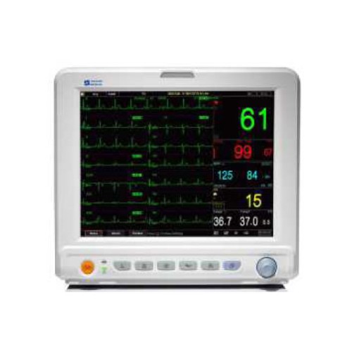 Características * Pantalla TFT 12.1"(800x600) * Retroiluminado LED * Configuración: * ECG - 5 derivaciones * Respiración * SpO2 adulto (+ extensión) * NIBP (brazalete adultos) * Temperatura * Conexiones: * USB * NET * Almacenamiento hasta 72h ECG * Protección descarga desfibril. * Indicador alarma visible/sonora * Batería li-ion 11.1v/4400mAh * Funda protectora * Medidas: 320x150x290mm * Peso: 3kg